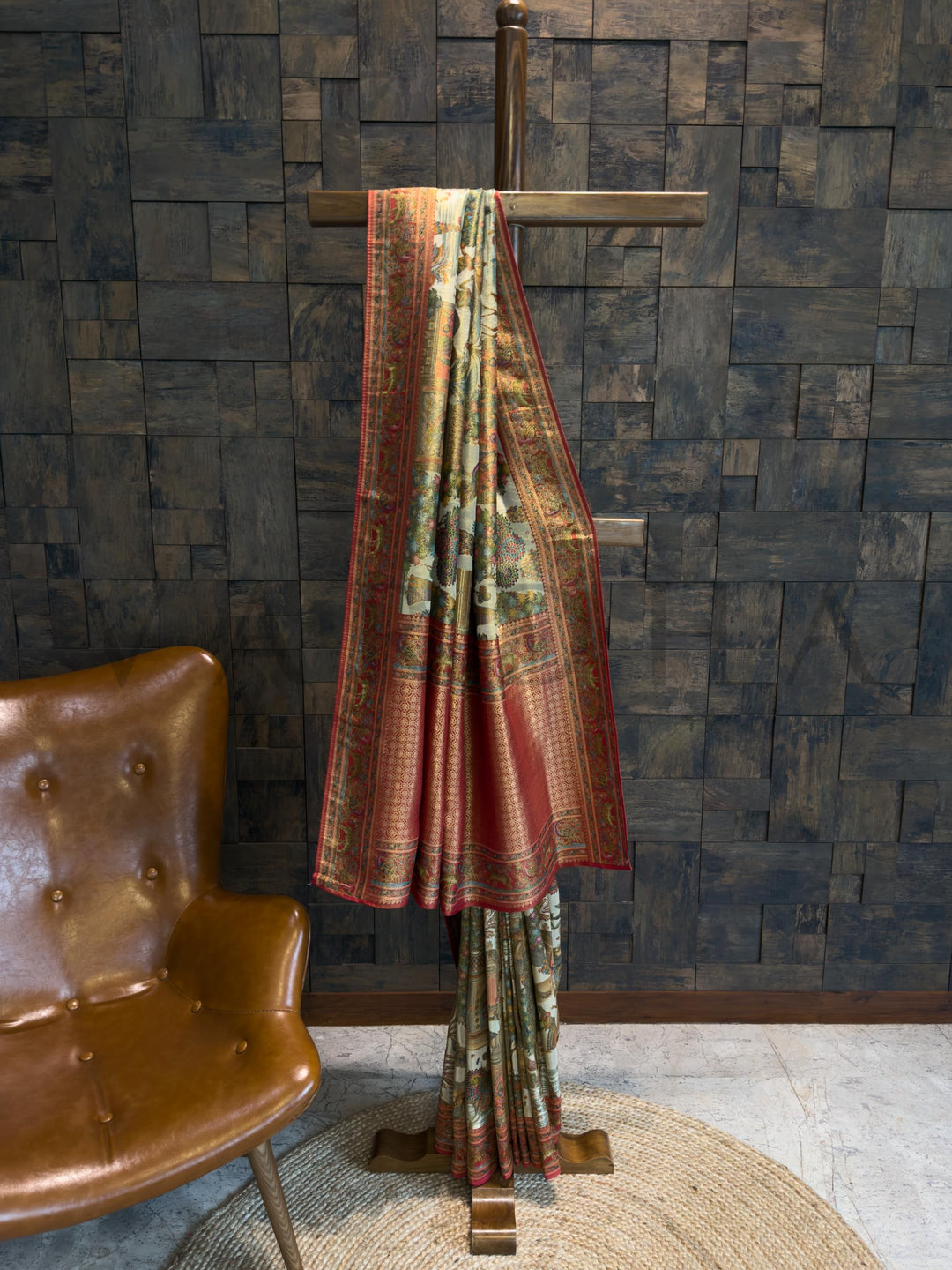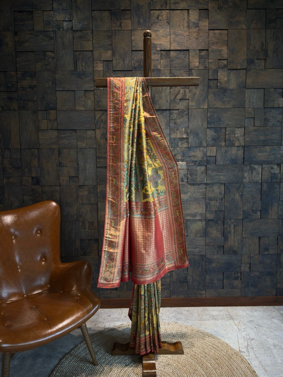 The woman who adorns Katan commands attention with the richly detailed yet desirable soft feel of the fabric. Crafted by master artisans, these sarees are treasured keepsakes too. Half-and-half tricolours work wonderfully with Katan.