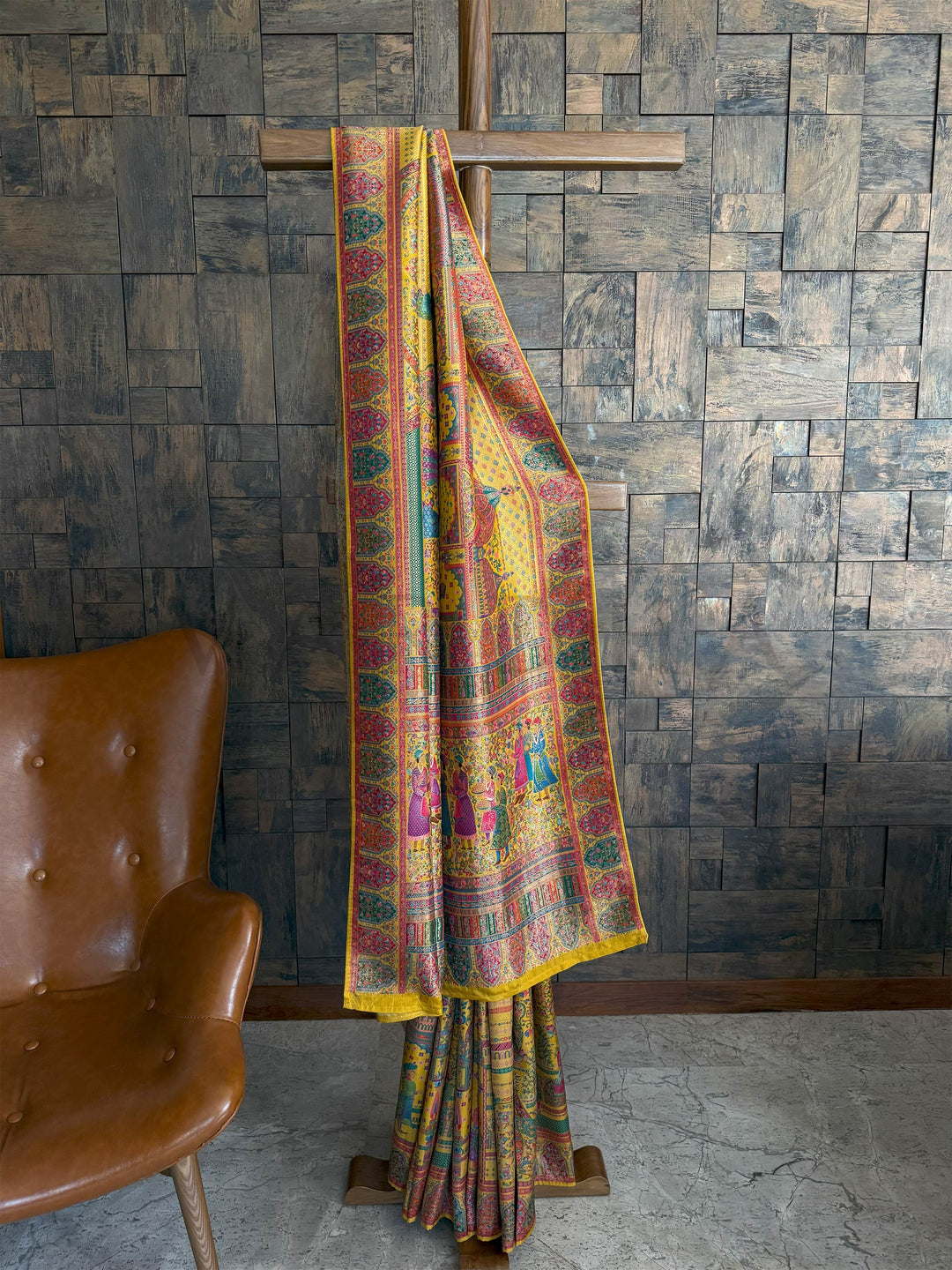 The weaves give a mesmerising slab effect to your saree with an appearance of small to medium and alternating darker lines. Silk is primarily used for this weave and adorned with medium Zari work with Butta designs.