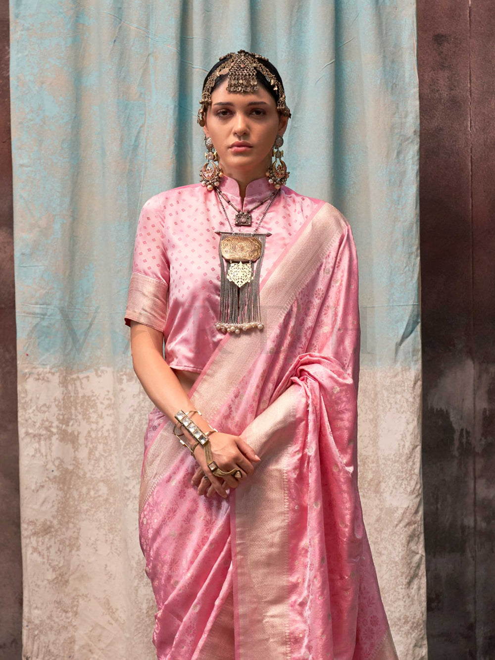 Step into elegance with the Pure Satin Weaving Saree, crafted with meticulous detail using traditional weaving. This saree embodies a perfect blend of vintage charm and modern luxury, making it a must-have for weddings, grand celebrations, and festive occasions.