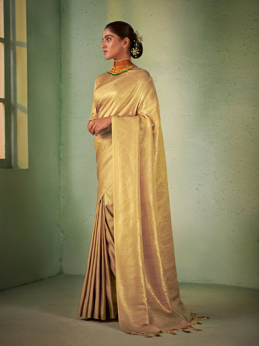 Tacha Beige Gold Zari Kanjivaram Silk Saree
