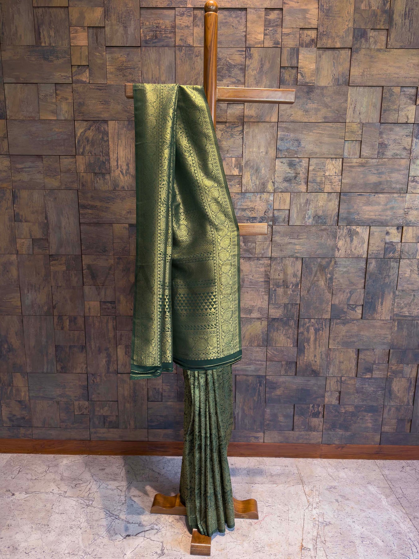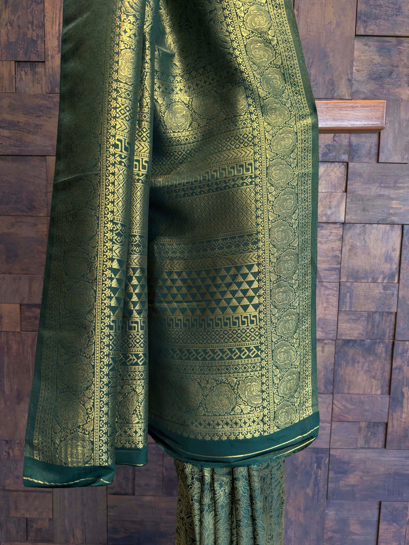 Bottle Green Antique Gold Zari Kanjivaram Silk Saree