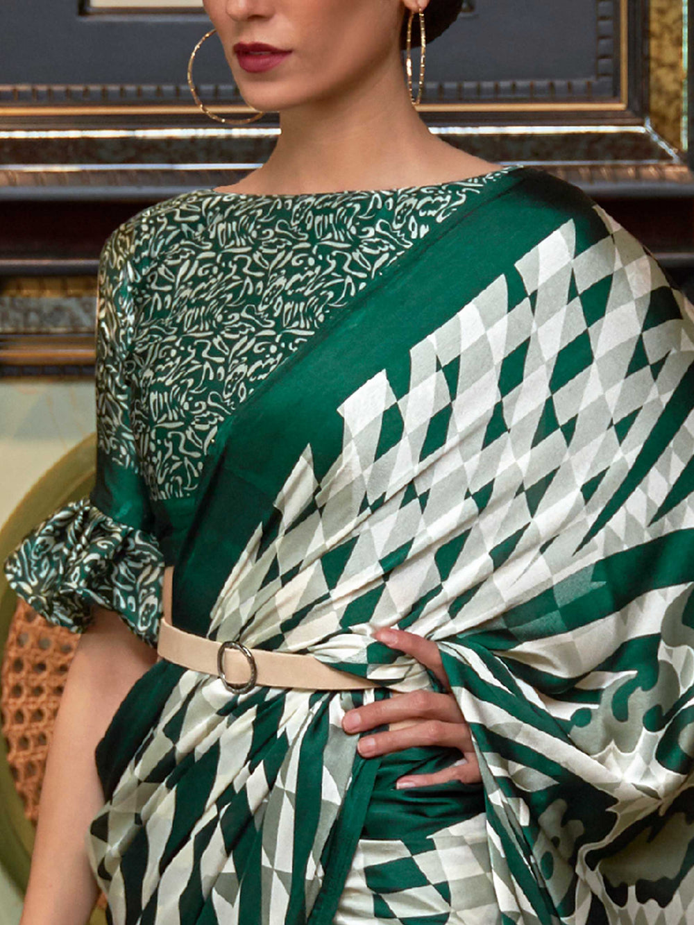 Embellished with Zari, enhanced with intricate threadwork, and woven within layers of Satin, we have invoked the allure of nature in our green sarees. From graceful Pashminas and heavily embroidered Banarasi to captivating Crepe.
