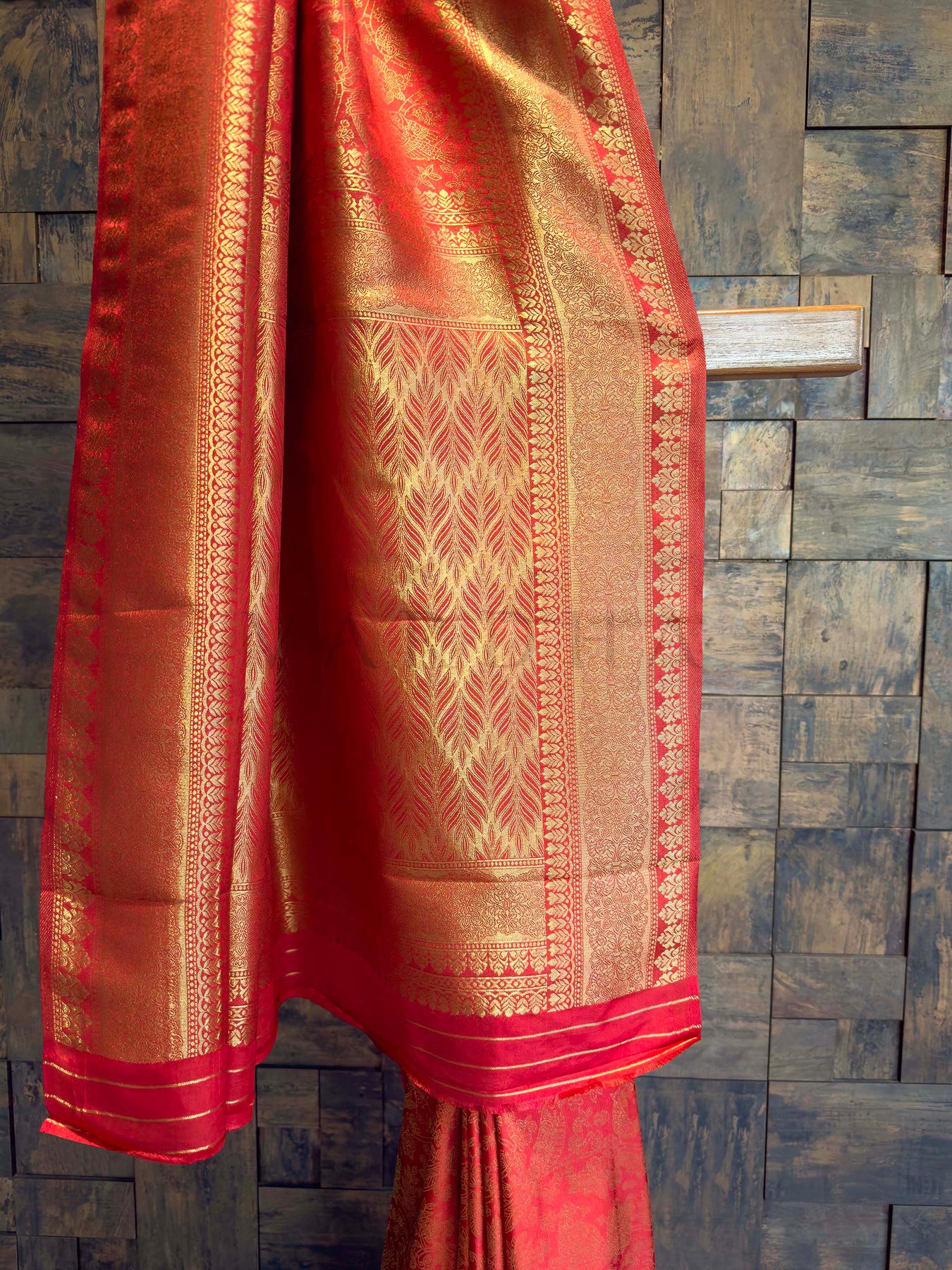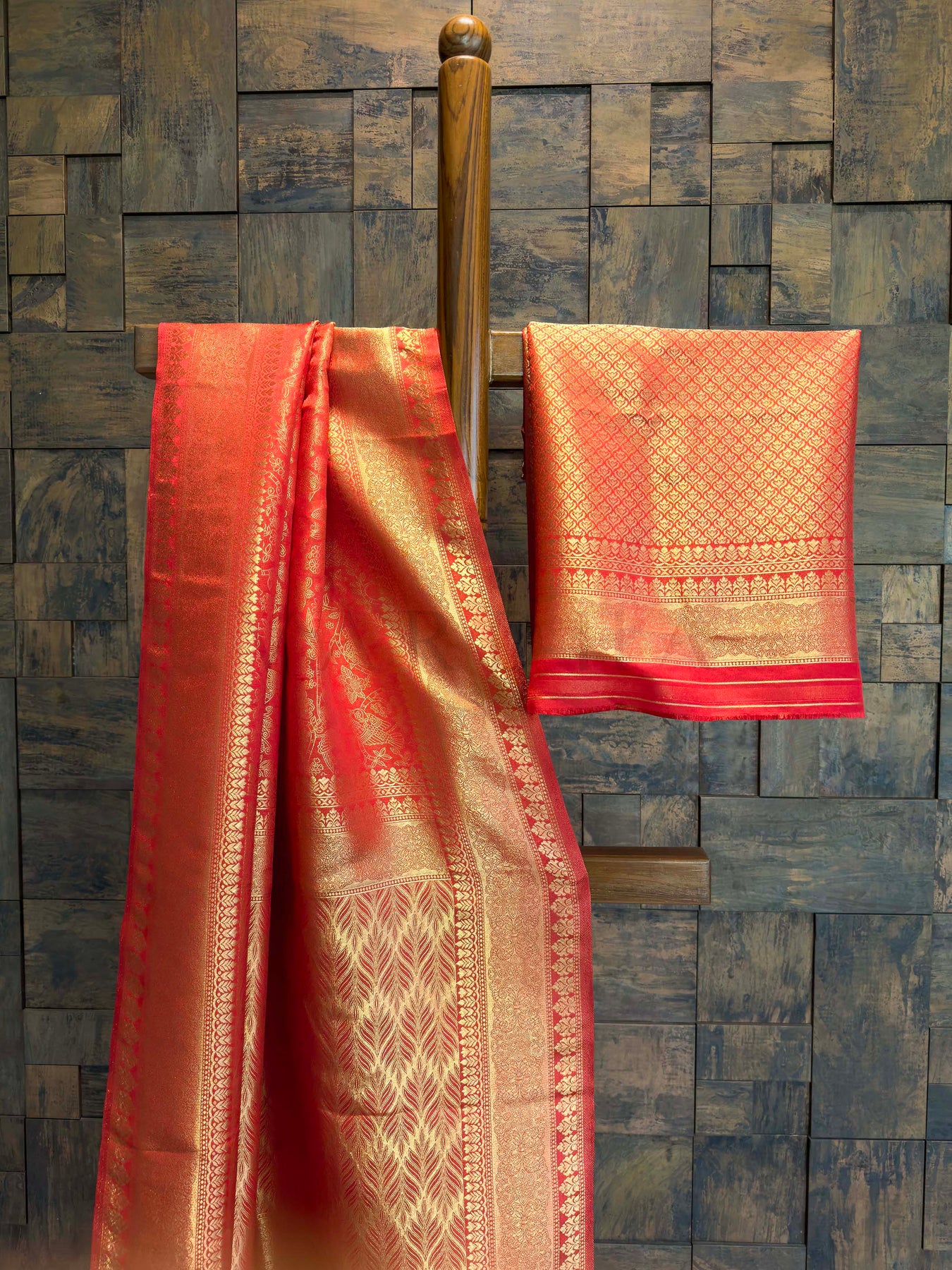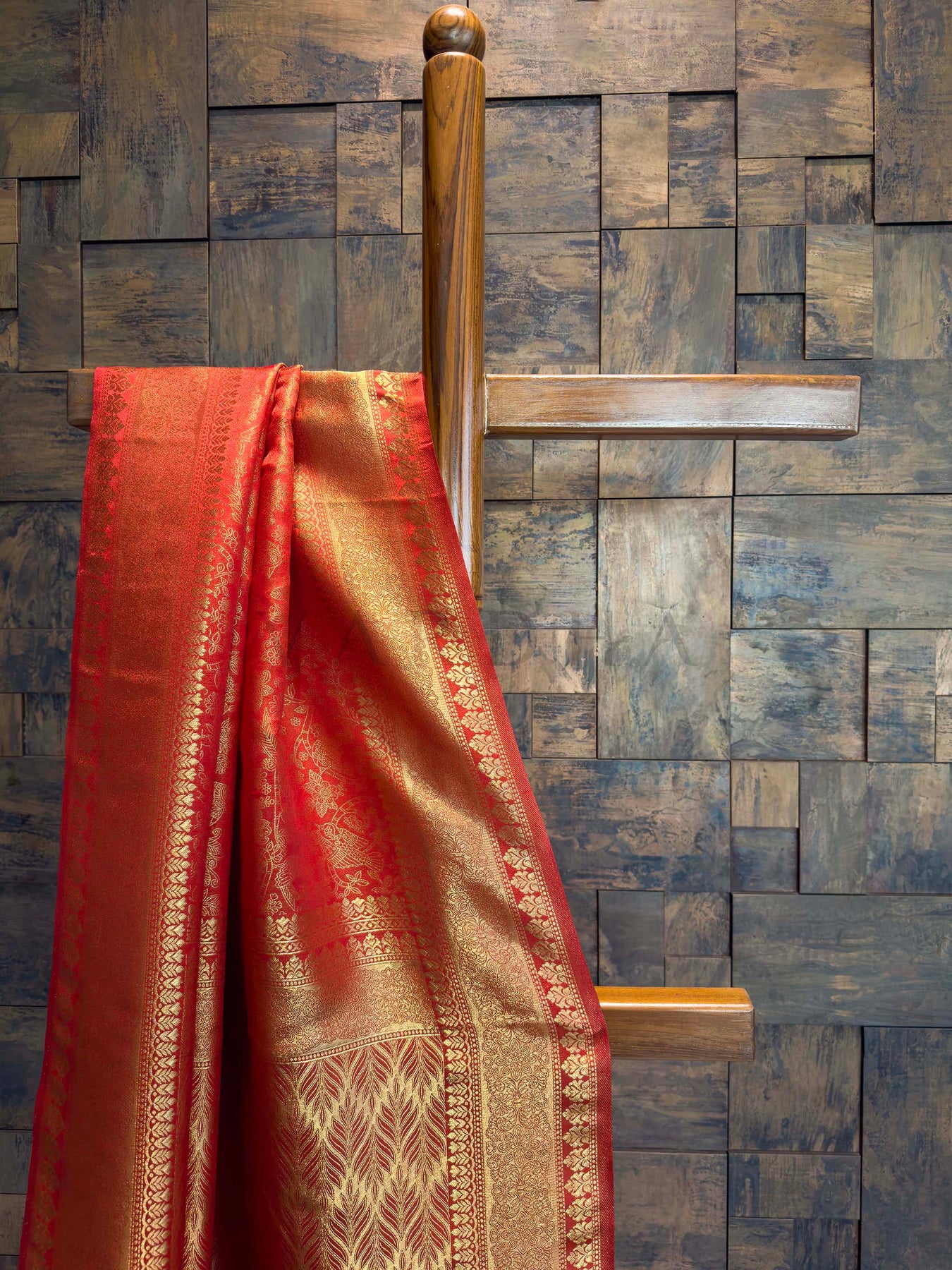 Sindoori Red Golden Zari Kanjivaram Silk Saree