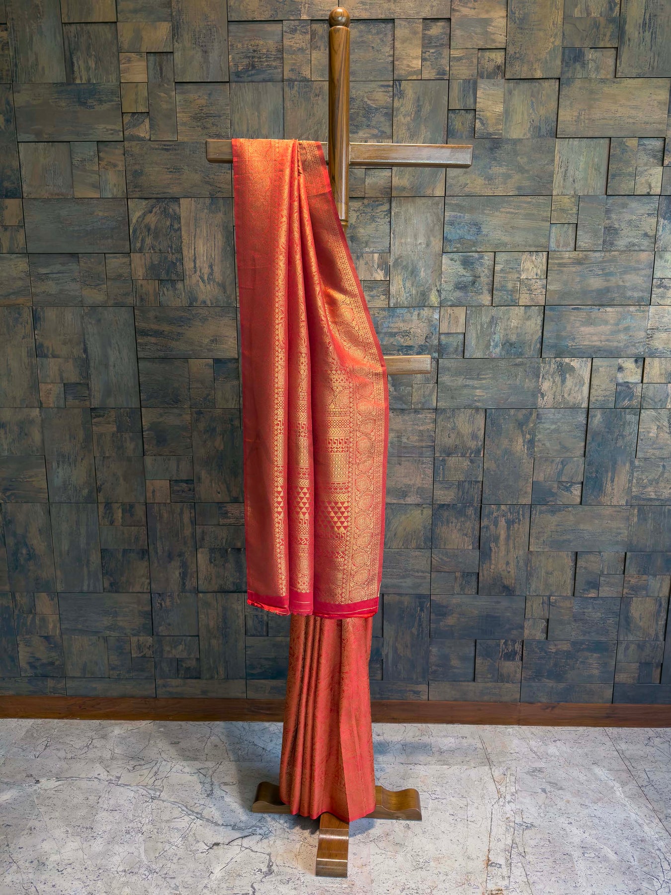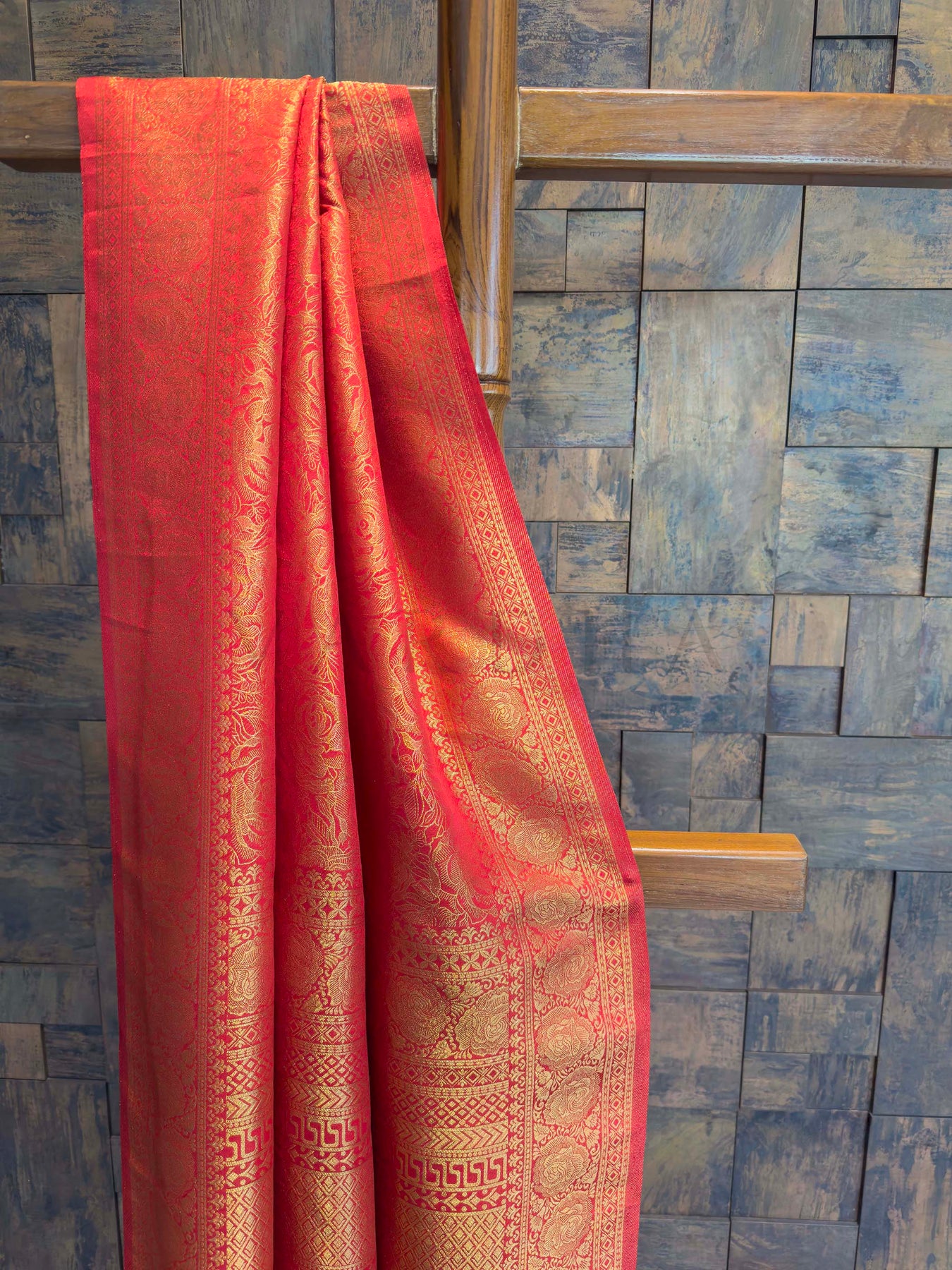 Vermilion Red Golden Zari Kanjivaram Silk Saree