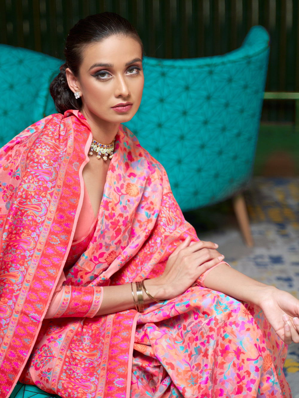 Salmon-Multi Pashmina Linen Saree