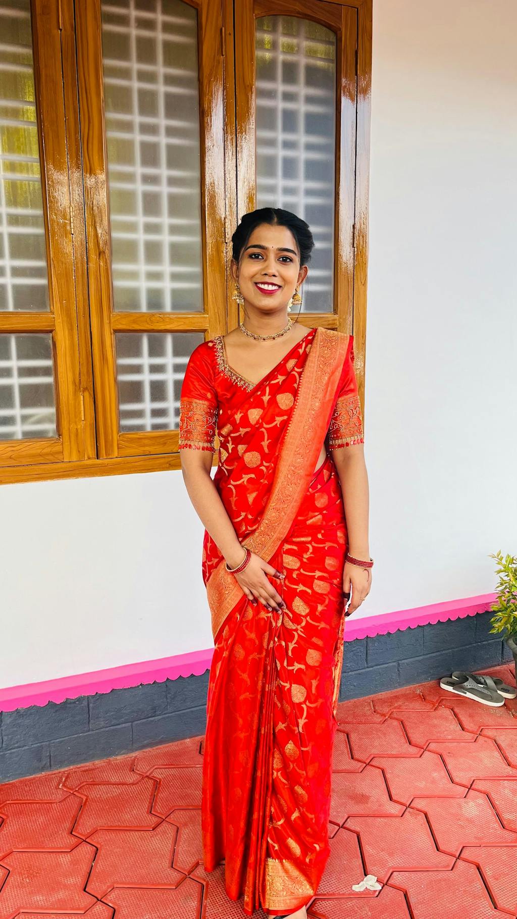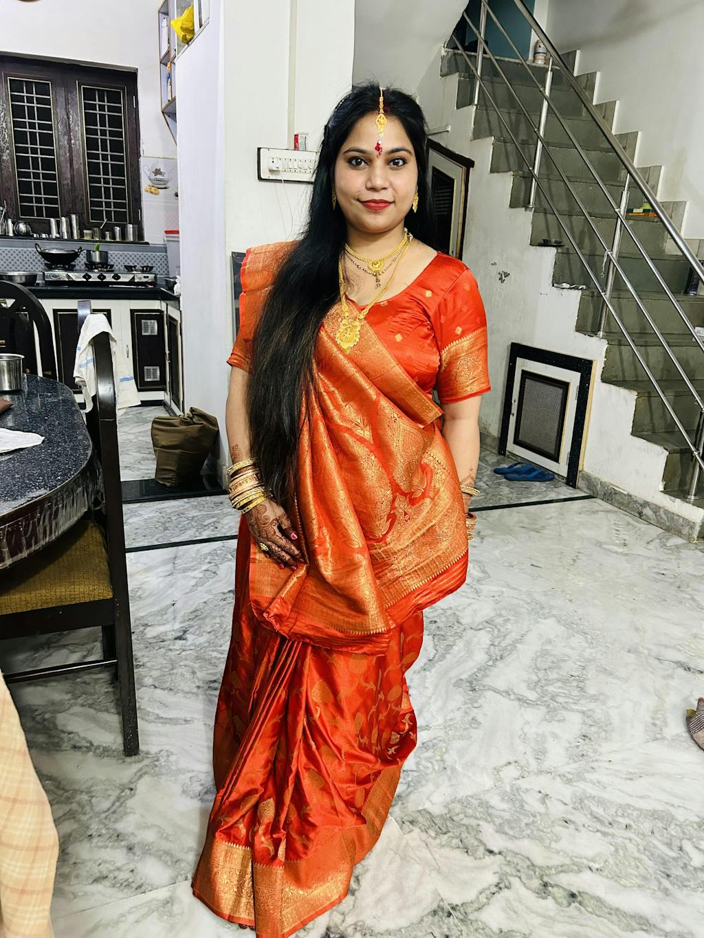 Why Choose This Saree: This Rust Orange Banarasi Satin Silk saree is the ideal blend of tradition and modern allure. The rich orange shade with gold zari detailing makes it a bold yet elegant choice for weddings, festive celebrations, or special events. The luxurious satin silk fabric gives a smooth, flowing drape that enhances your grace, ensuring you look and feel majestic.