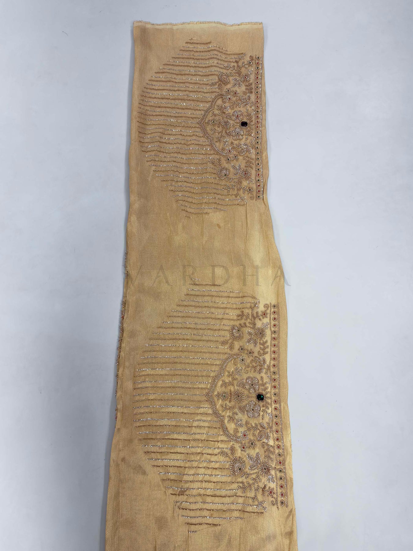 • Work: Heavy Hand Zardozi, Maggam Work, Sequins, and Stone Embellishments.