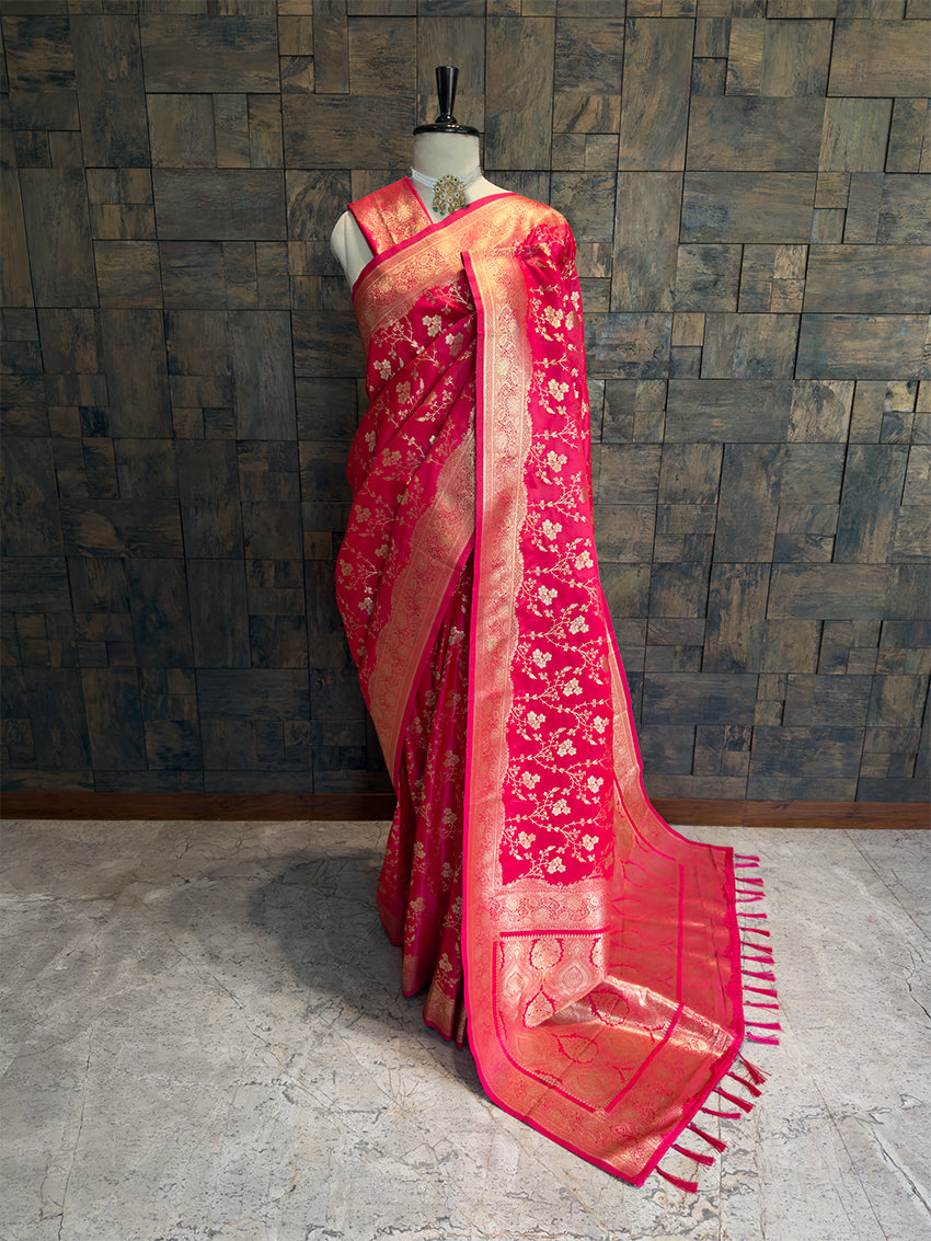 Rani Pink Banarasi Satin Silk Saree with Gold Zari