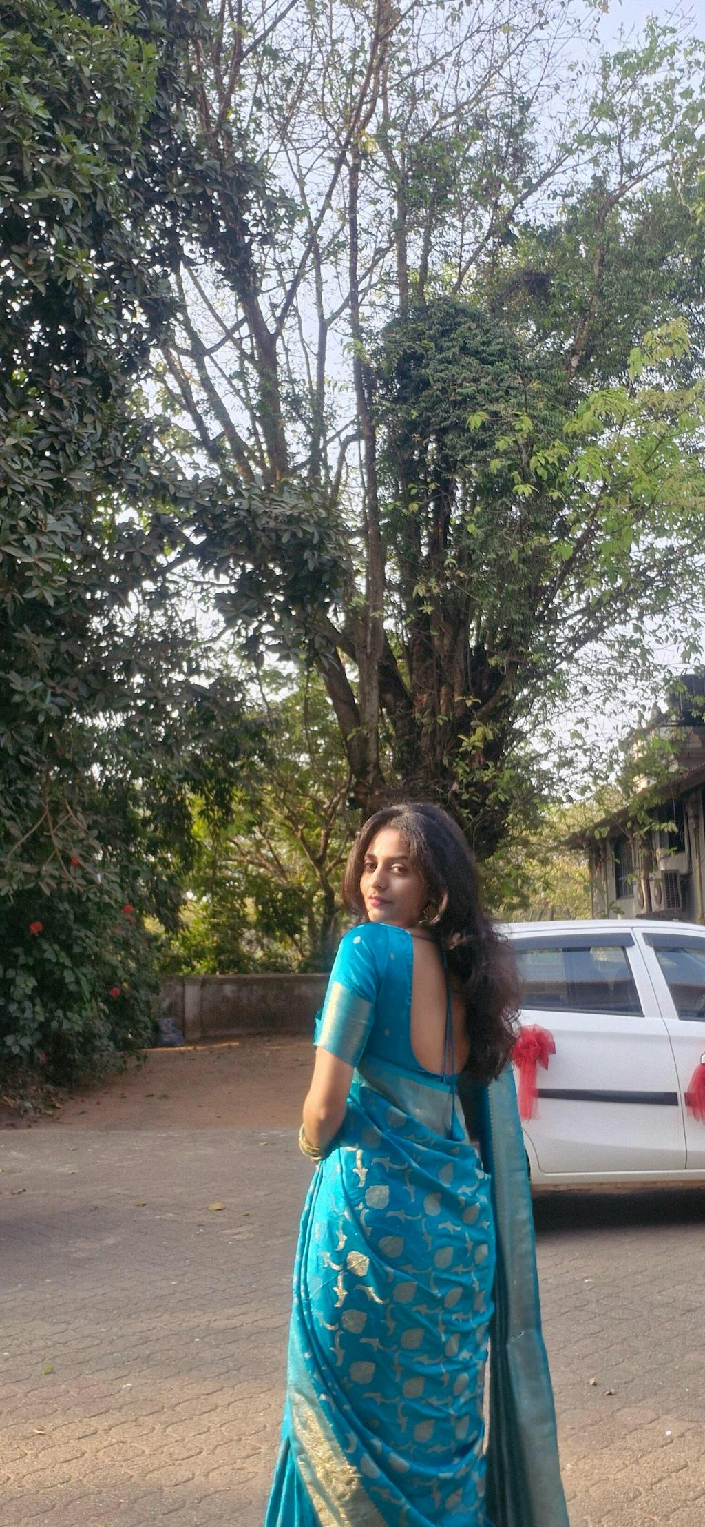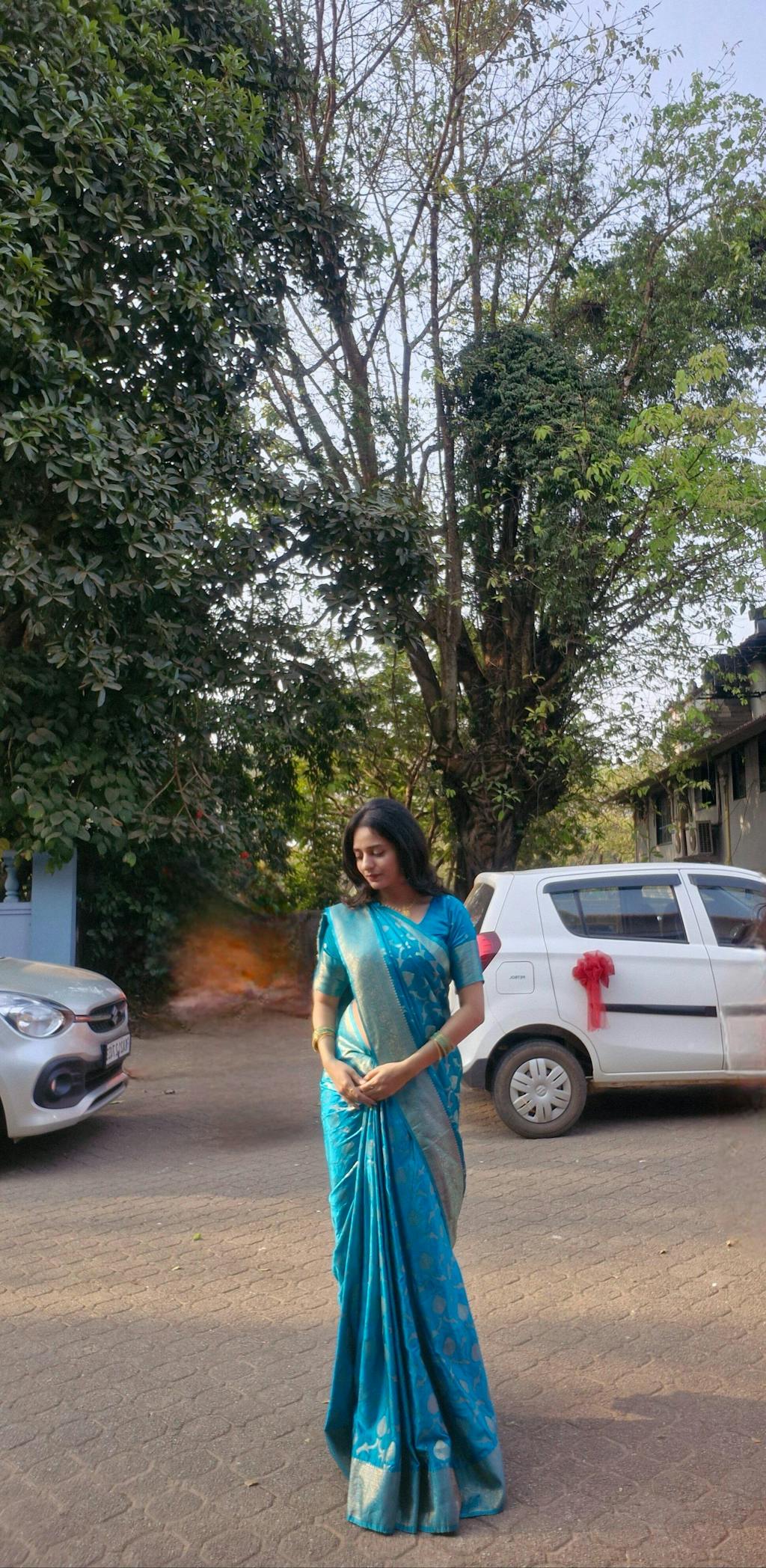 - Color Scheme: Teal blue body, pallu, and blouse for a unified, elegant appearance.